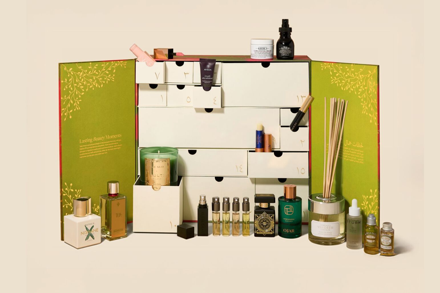 تقويم الجمال "لحظات جمال تدوم" يضم 15 منتجاً فاخراً ضمن الأكثر مبيعاً من أبرز الماركات مثل غوتشي، نيشان، لوكسيتان، اوغستينوس بدر، مايند غايمز، دافينس وأكثر.