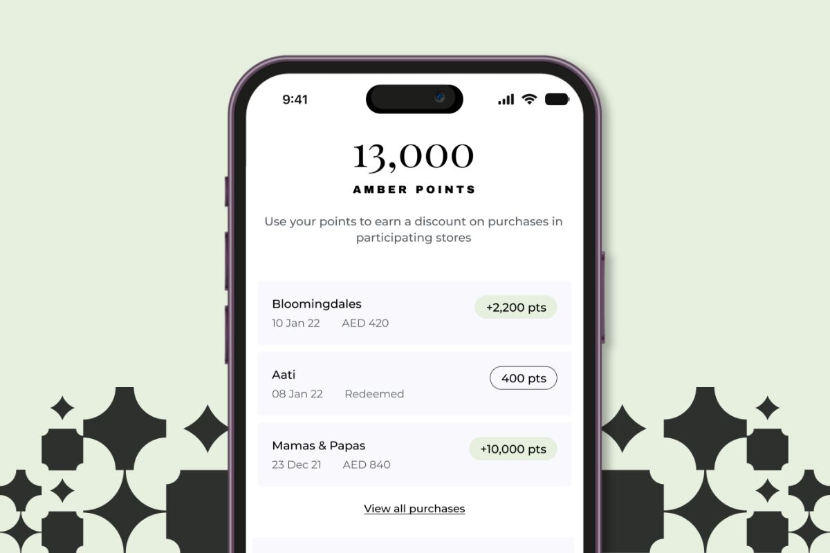 ستحصل على نقاط أمبر مُقابل كل عملية شراء. إضافة إلى المزيد من الامتيازات عند ارتقائك لمستوى أعلى ضمن برنامج أمبر.